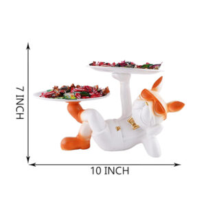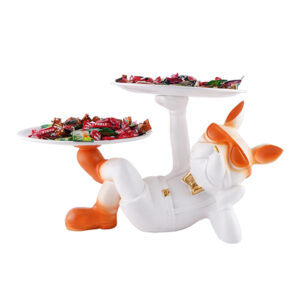 Dressed in cool orange shades, boots, and a golden bowtie, the stylish dog balances two trays on its paws—perfect for storing candies, jewelry, keys, coins, or small desk essentials. Crafted from high-quality resin, it makes a bold and cheerful statement in any room.