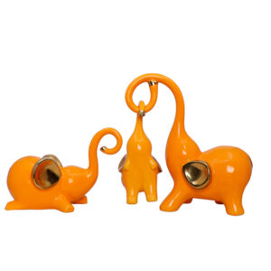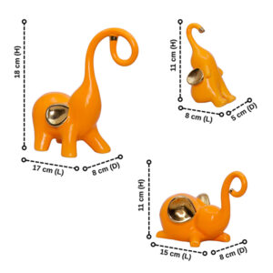 Add warmth and charm to your space with this playful Orange Ceramic Elephant Family Set. Featuring three uniquely posed elephants in vibrant orange with glossy gold accents, this trio is sure to spark joy and positive energy. The tallest figure stands at 18 cm high, with the others adorably seated and lying at 11 cm each.