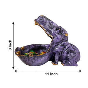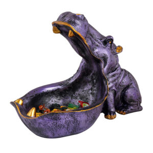 Add a pop of color and fun to your space with this 11-inch purple hippo candy bowl. Designed in a charming open-mouth style, this eye-catching resin dish is perfect for holding treats, trinkets, or small items. With golden detailing, it brings a playful yet artistic touch to your home or office décor.