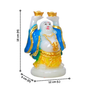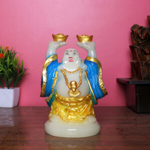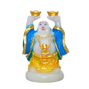 Invite wealth and positive energy into your space with this beautifully crafted radiant light Buddha figurine. Holding two gold ingots high, this symbol of abundance glows with a built-in LED light. The vibrant blue and gold detailing enhances its divine presence, making it perfect for home decor, spiritual ambiance, or gifting.