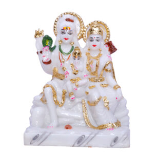 The Shiv Parivar idol showpiece from GW Creations is a breathtaking representation of divine unity, grace, and spiritual strength, meticulously crafted from high-quality marble. Standing at an impressive 9 inches, this exquisite piece is adorned with golden foil work, adding a touch of opulence and elegance to its appearance. Ideal for enhancing the spiritual ambiance of any home or office, the idol beautifully captures the essence of Lord Shiva, Goddess Parvati, and their children, Ganesha, symbolizing harmony and familial devotion. The intricate detailing and glossy finish highlight the exceptional craftsmanship of skilled artisans, making it a cherished centerpiece that embodies both beauty and spiritual significance.