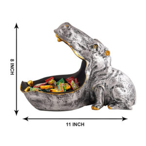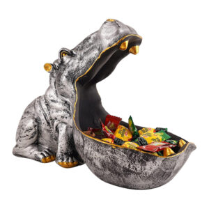 Add a playful twist to your decor with this silver hippo candy holder! Measuring 11 inches in length and 8 inches in height, this charming hippo features a wide open mouth that doubles as a quirky snack or trinket bowl. Made from durable resin and detailed with gold accents, it’s perfect for living rooms, offices, or gift tables.