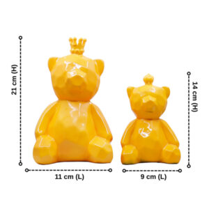 These charming teddy bear showpieces, available as a set of two, are crafted from high-quality polyresin by GW Creations. Their delightful yellow hue adds a cheerful touch to any space, whether at home or in the office. These adorable figures are perfect for adding a playful yet elegant accent to your decor. These teddy bear showpieces feature intricate detailing that captures the whimsy and warmth of these beloved creatures. The durable polyresin material ensures longevity, making them a lasting addition to your collection. Whether displayed on a shelf, desk, or mantle, they bring a touch of joy and brightness to any room.