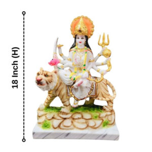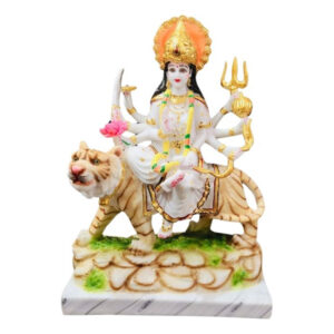 This beautifully crafted Durga Mata idol brings divine strength and protection into your home. Featuring Goddess Durga seated on her majestic tiger, this intricately designed marble murti is ideal for home temples, office desks, and festive décor. Worshipped as the symbol of power, courage, and victory, Goddess Durga blesses devotees with prosperity and removes negativity.