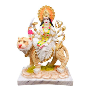 This beautifully crafted Durga Mata idol brings divine strength and protection into your home. Featuring Goddess Durga seated on her majestic tiger, this intricately designed marble murti is ideal for home temples, office desks, and festive décor. Worshipped as the symbol of power, courage, and victory, Goddess Durga blesses devotees with prosperity and removes negativity.