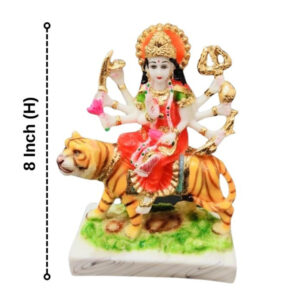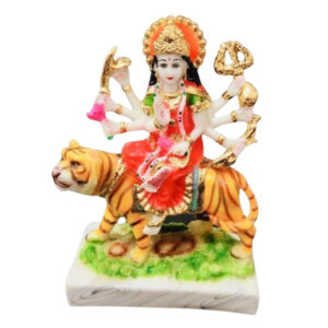 This beautifully crafted Durga Mata idol brings divine strength and protection into your home. Featuring Goddess Durga seated on her majestic tiger, this intricately designed marble murti is ideal for home temples, office desks, and festive décor. Worshipped as the symbol of power, courage, and victory, Goddess Durga blesses devotees with prosperity and removes negativity.