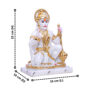 The Lord Hanuman idol showpiece from GW Creations is an extraordinary embodiment of strength, protection, and divine blessings, meticulously crafted from high-quality marble. Standing at an impressive 9 inches, this stunning piece is adorned with luxurious golden foil work, which enhances its regal and powerful appearance. Ideal for both home and office spaces, the idol beautifully captures the fierce and compassionate essence of Hanuman, known for his unparalleled courage and devotion. The intricate detailing and glossy finish highlight the exceptional craftsmanship of skilled artisans, ensuring it becomes a cherished centerpiece that inspires faith and positivity in any environment.
