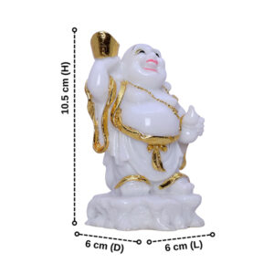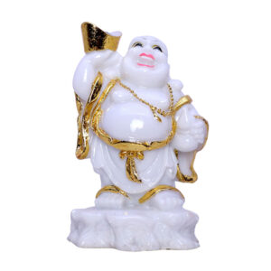 Bring positivity and good fortune into your home with this elegant White & Gold Laughing Buddha figurine. Crafted with high-quality resin and intricate golden detailing, this statue symbolizes wealth, happiness, and success. Ideal for home, office, or gifting, it serves as a powerful Feng Shui and Vastu enhancer, attracting prosperity and positive energy.