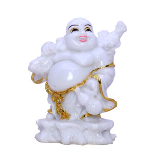 Enhance positivity and attract wealth with this exquisite White & Gold Laughing Buddha figurine. Crafted from high-quality resin with detailed gold accents, this statue represents joy, abundance, and spiritual harmony. Perfect for home decor, office spaces, meditation rooms, and as a thoughtful gift for loved ones. According to Feng Shui and Vastu principles, placing the Laughing Buddha in your surroundings invites success, happiness, and good fortune.