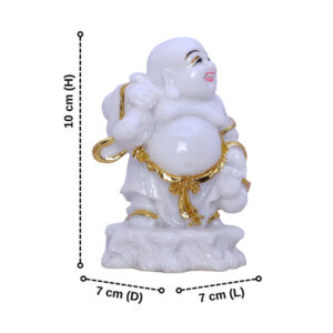 White & Gold Laughing Buddha Statue – 10 cm (H) x 7 cm (L) x 7 cm (D) | Feng Shui & Vastu Prosperity Idol